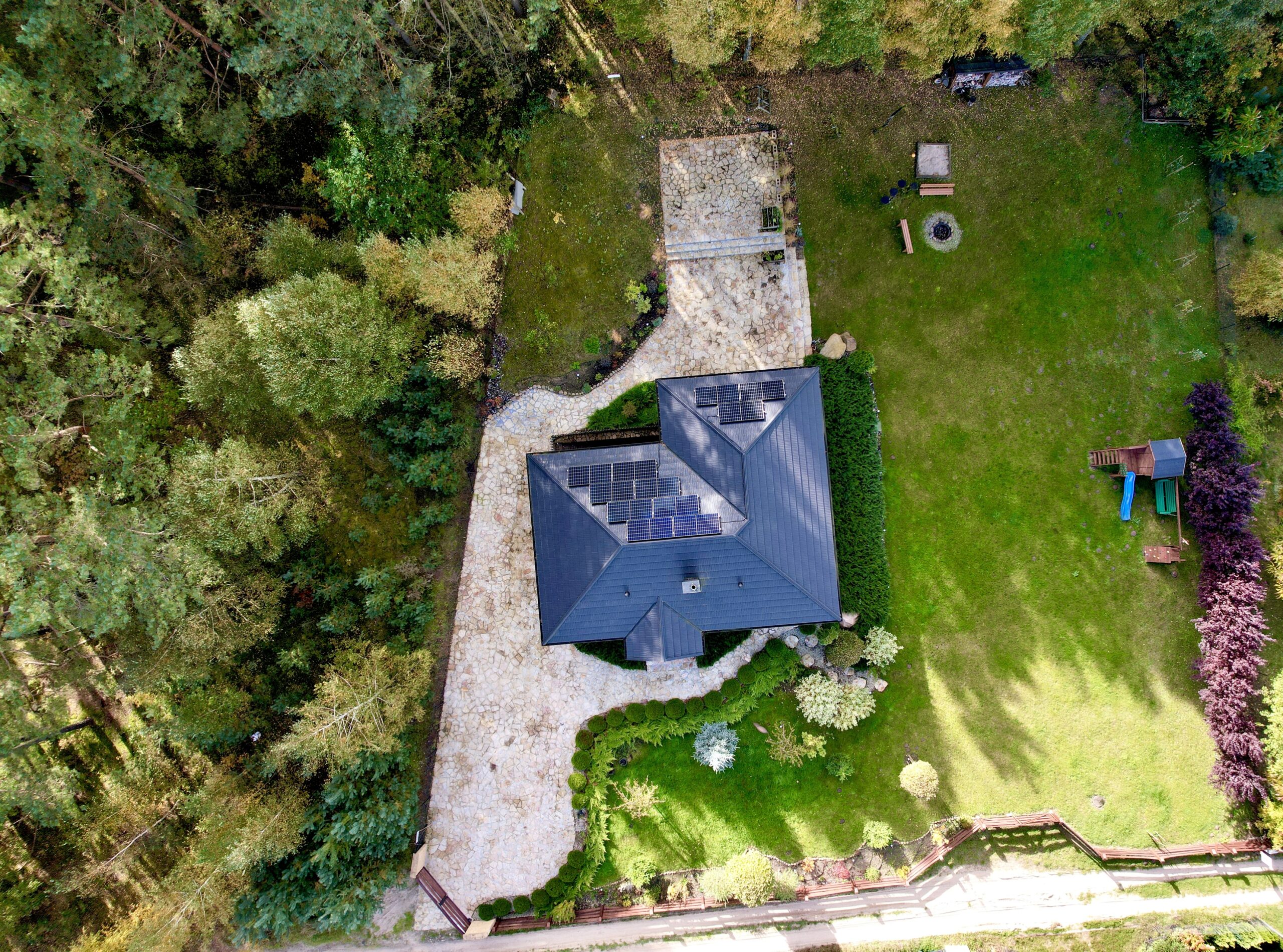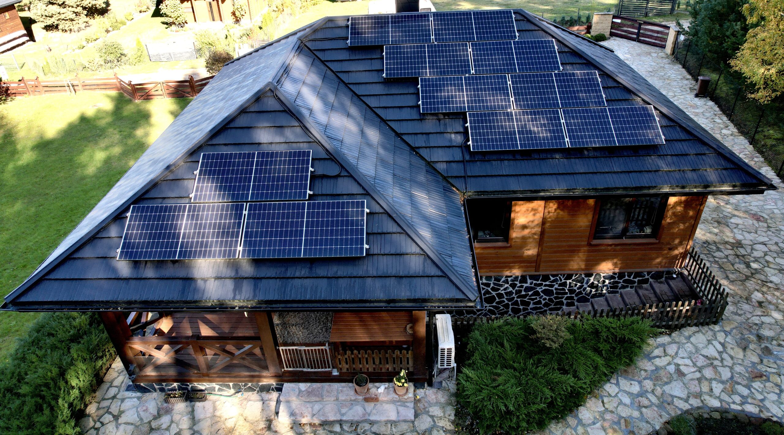 Na dachu znajduje się instalacja fotowoltaiczna 4,95 kW, która w pełni pokrywa zapotrzebowanie domu na energię. Średnie rachunki za prąd wynoszą ok. 30 złotych miesięcznie. W magazynie pozostaje 500 kWh nadwyżki rocznie.