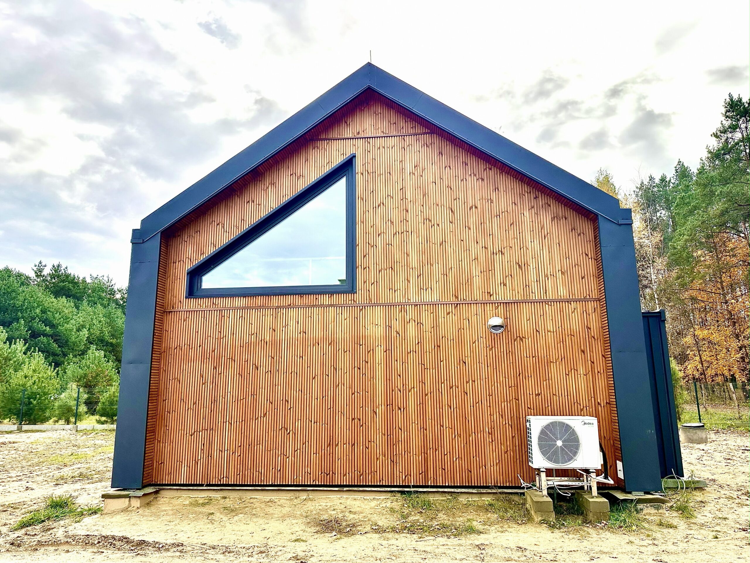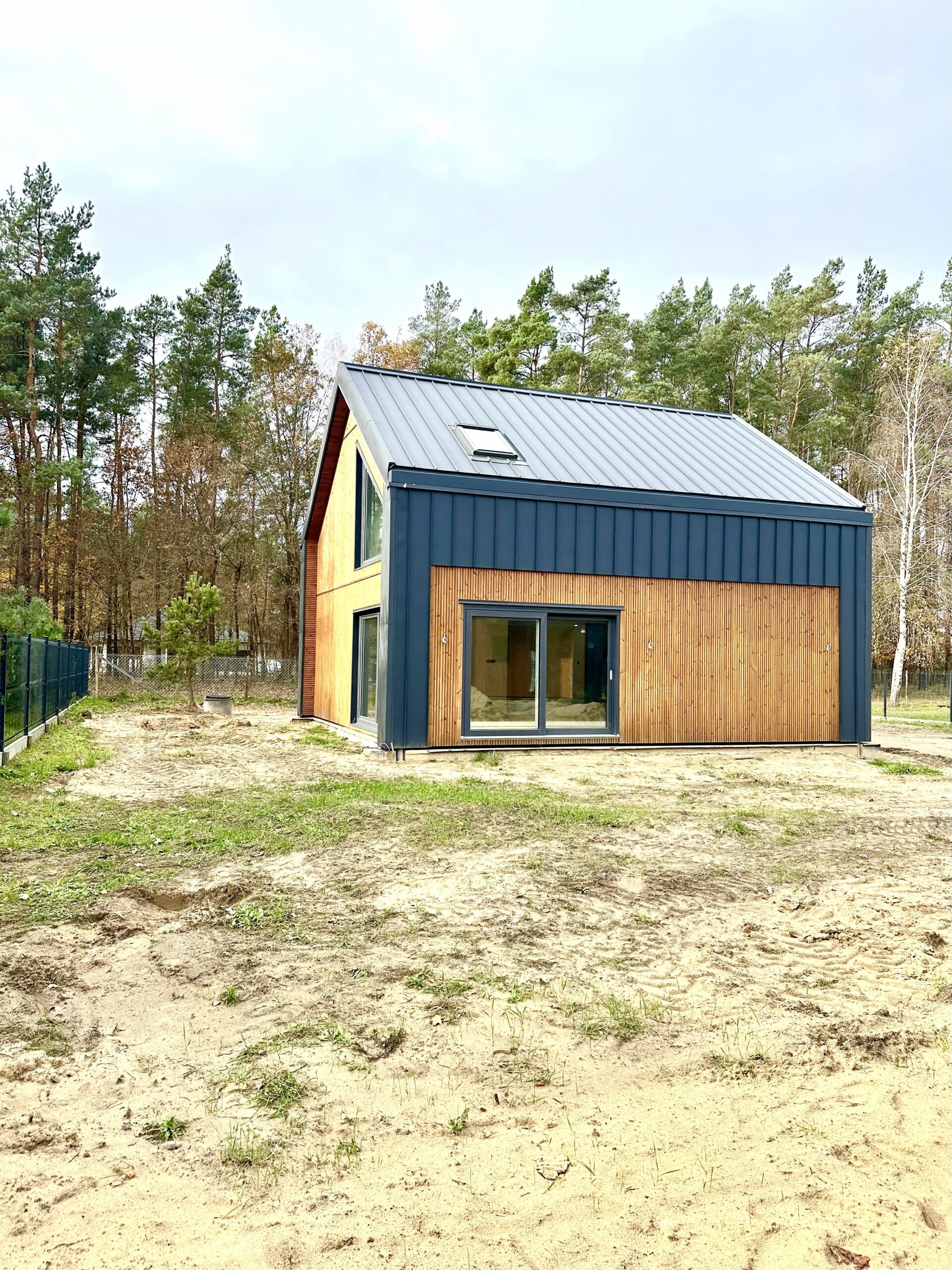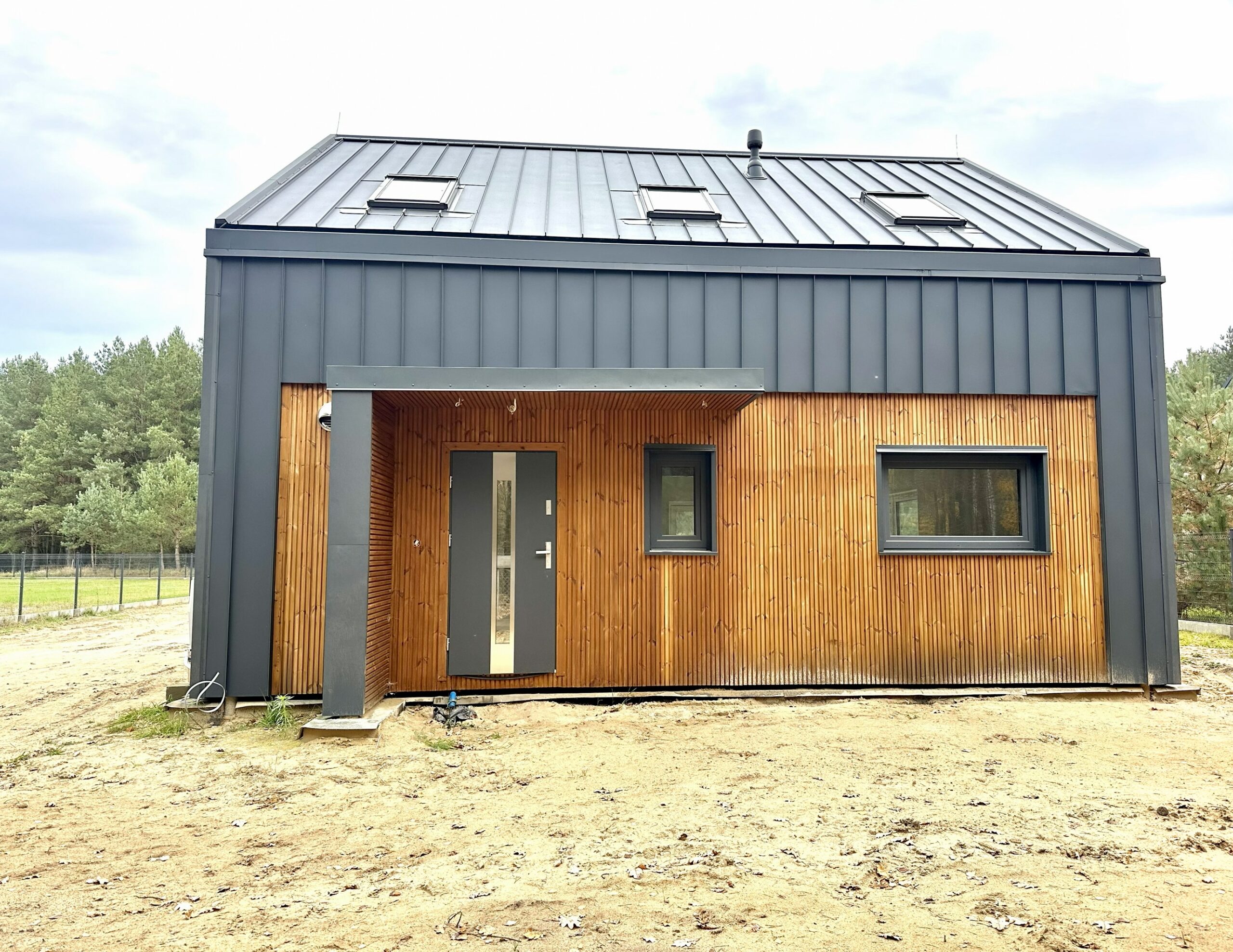 Nowoczesny dom modułowy położony blisko natury, w otoczeniu lasów i w bliskim sąsiedztwie jezior Pojezierza Brodnickiego.