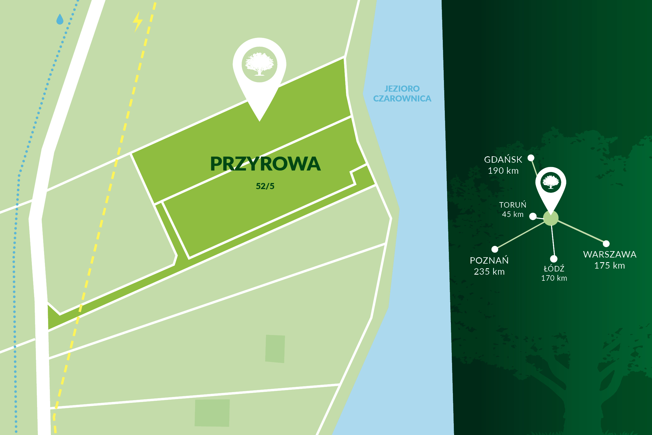 Na sprzedaż dwie działki o numerze ewidencyjnym 52/2, położone w miejscowości Przyrowa, gmina Brzuze, woj. kujawsko-pomorskie. Bezpośredni dostęp do jeziora Czarownica – jeziora rynnowego otoczonego lasami i naturą.