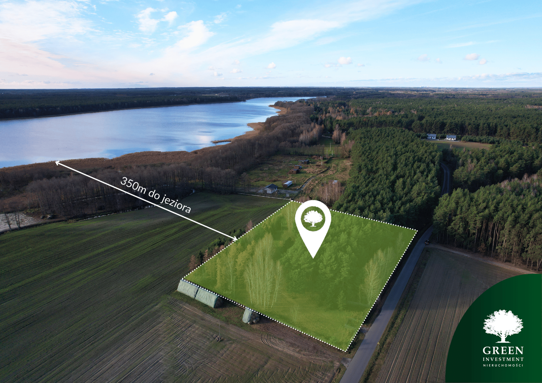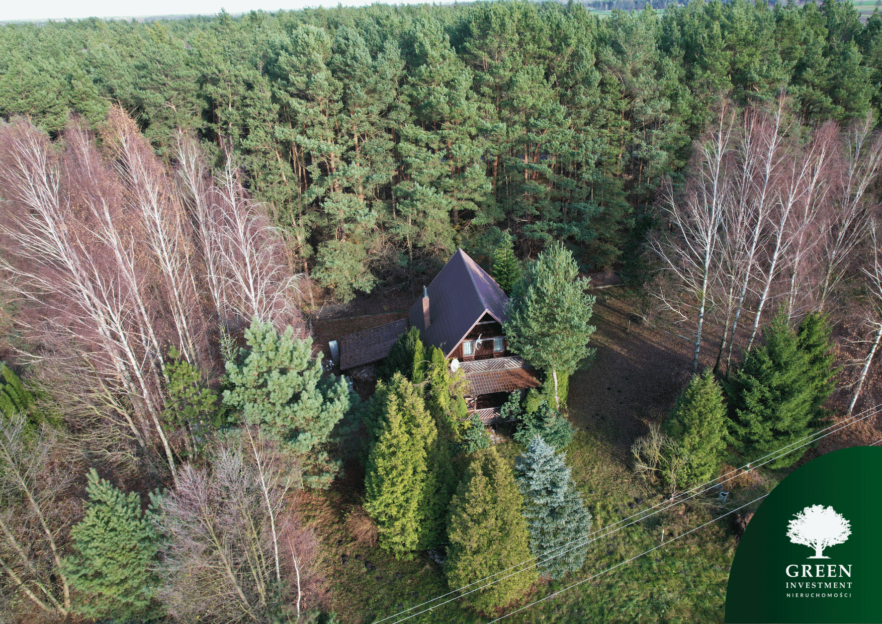 Na sprzedaż nieruchomość, która daje pełną prywatność. Dom ukryty za własnym lasem, dzięki czemu pozostaje niewidoczny z drogi i otoczony zielenią przez cały rok, położony 350 m od jeziora.