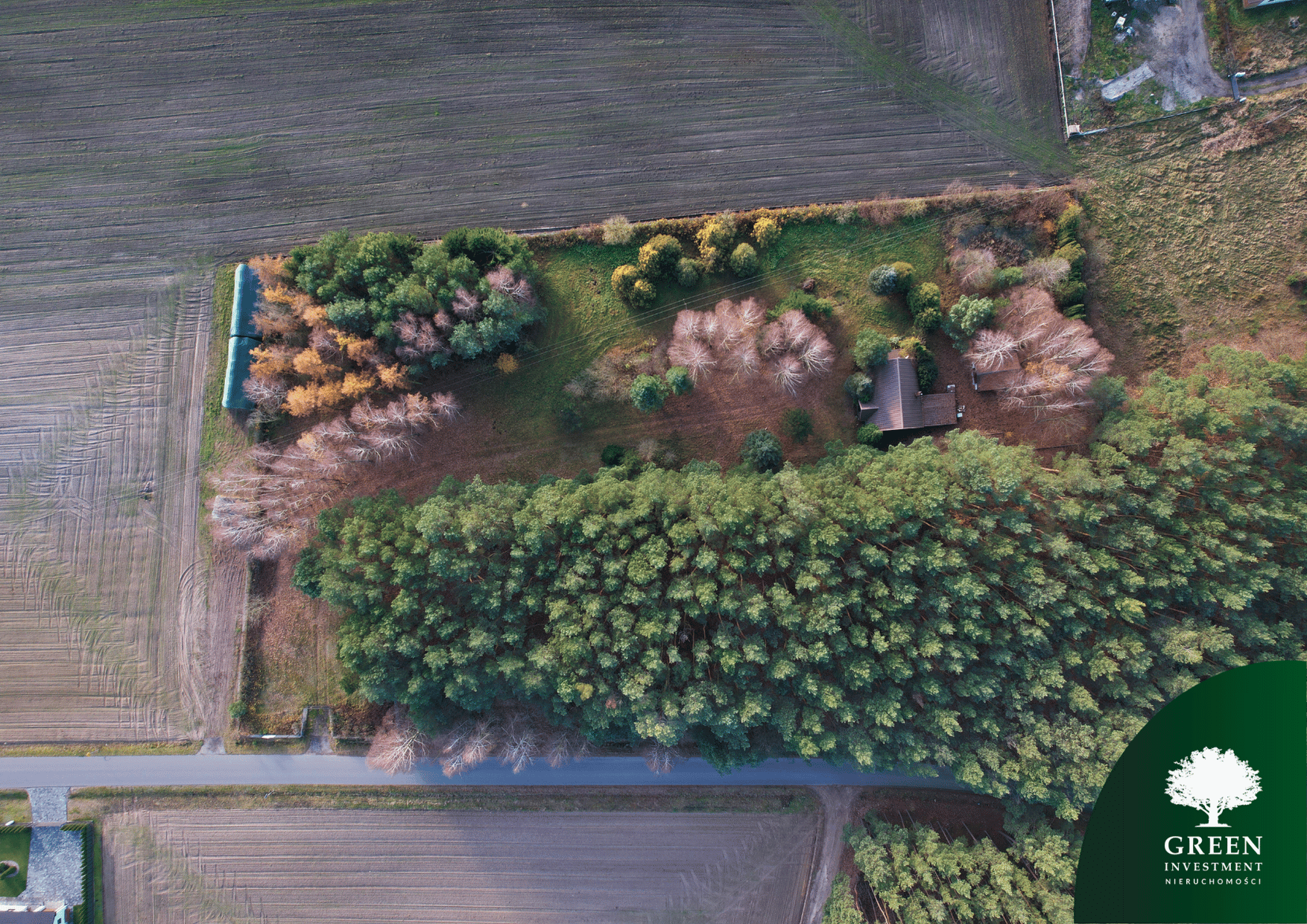• działka zabudowana z domem, stawem oraz garażem o powierzchni 24 m2.